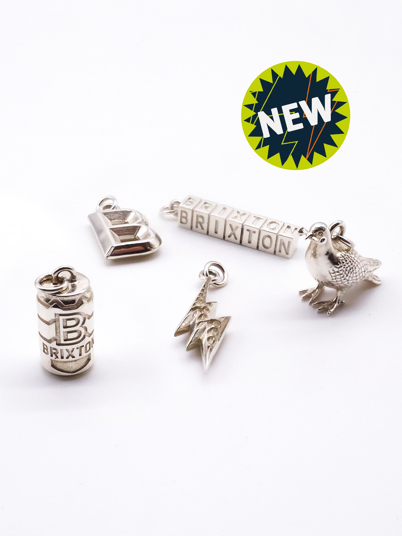 Meet the Brixton Charms Collection. Five iconic charms designed to celebrate the spirit, personality, and playful chaos of our neighbourhood. Crafted in collaboration with jeweller Sam Ozanne, each charm is made from recycled sterling silver and stands out with the kind of detail that makes Brixton… well, Brixton. Wear one or stack a few and build your own Brixton story. These charms are designed to help you keep Brixton close, wherever you go.